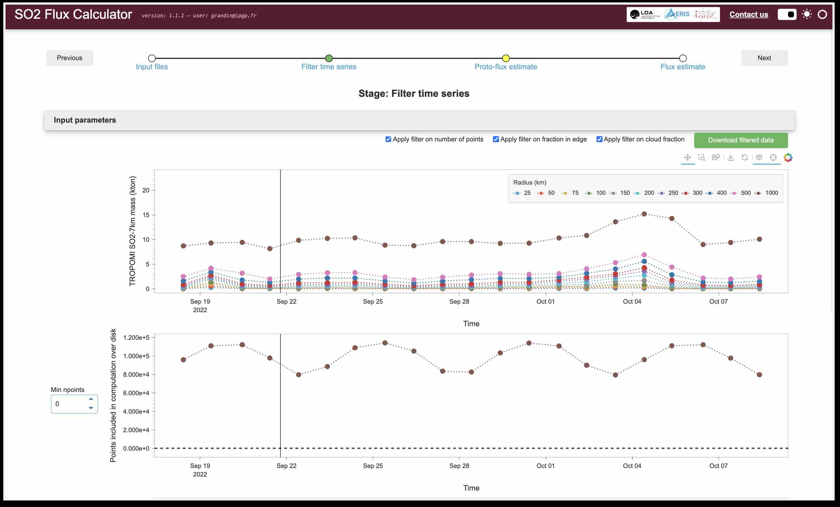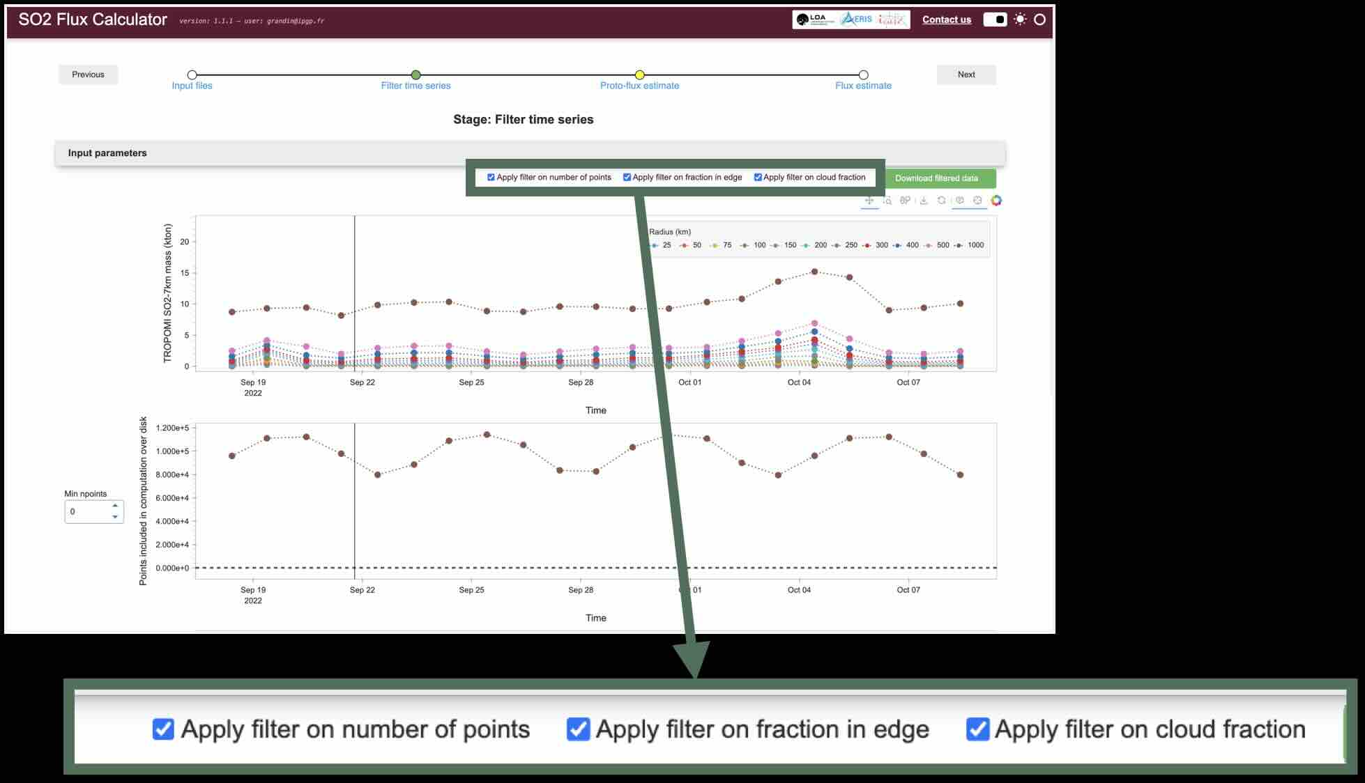Optionally, you may choose to apply some quality filters to your input data, in order to remove “bad” data points.