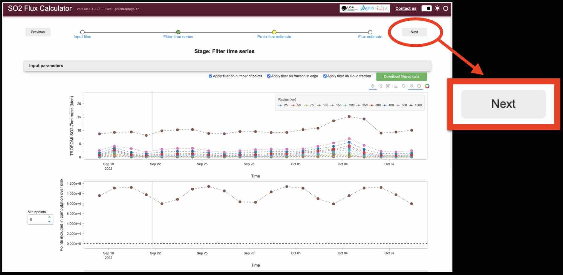 When you are ready to process these filtered data, click on Next