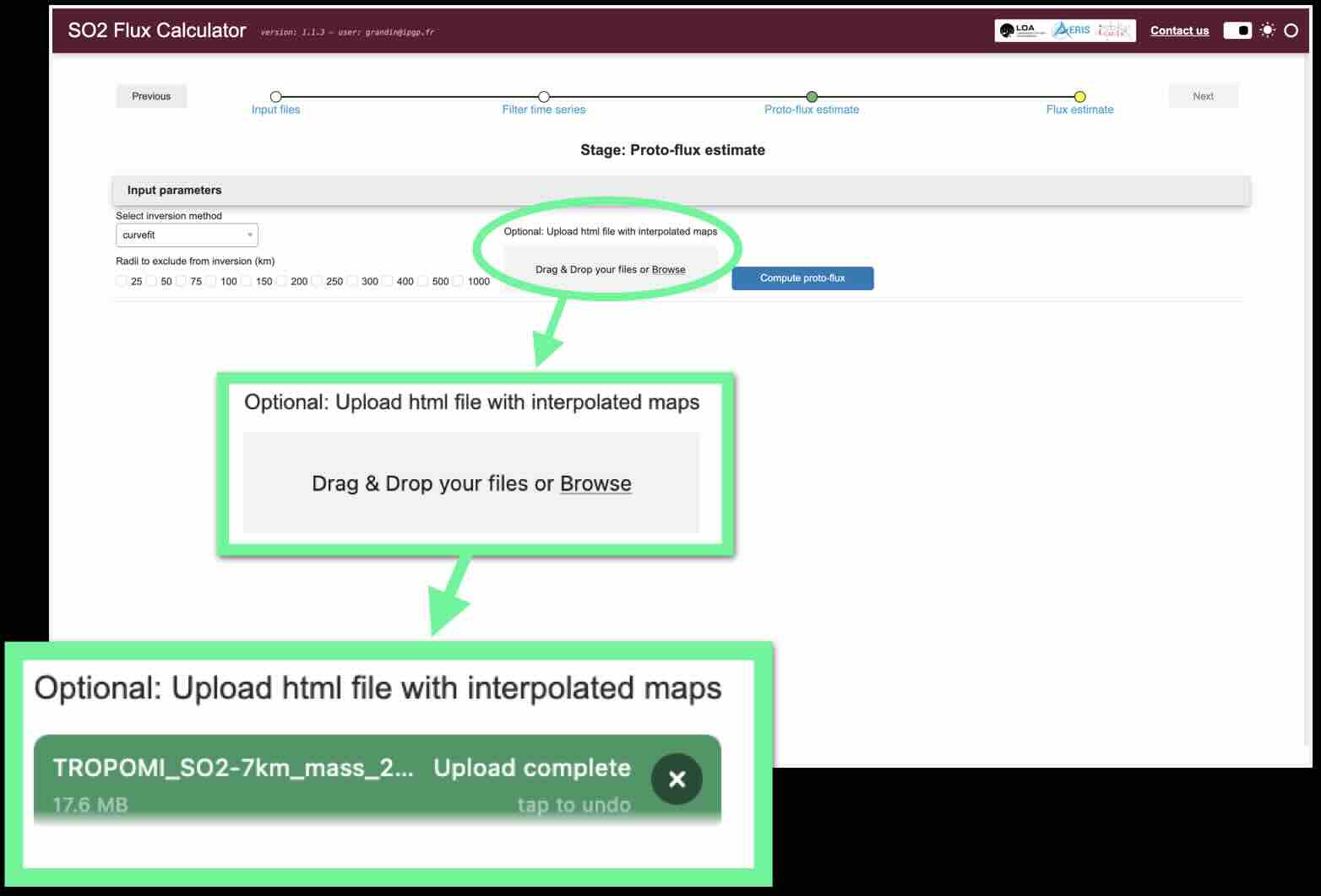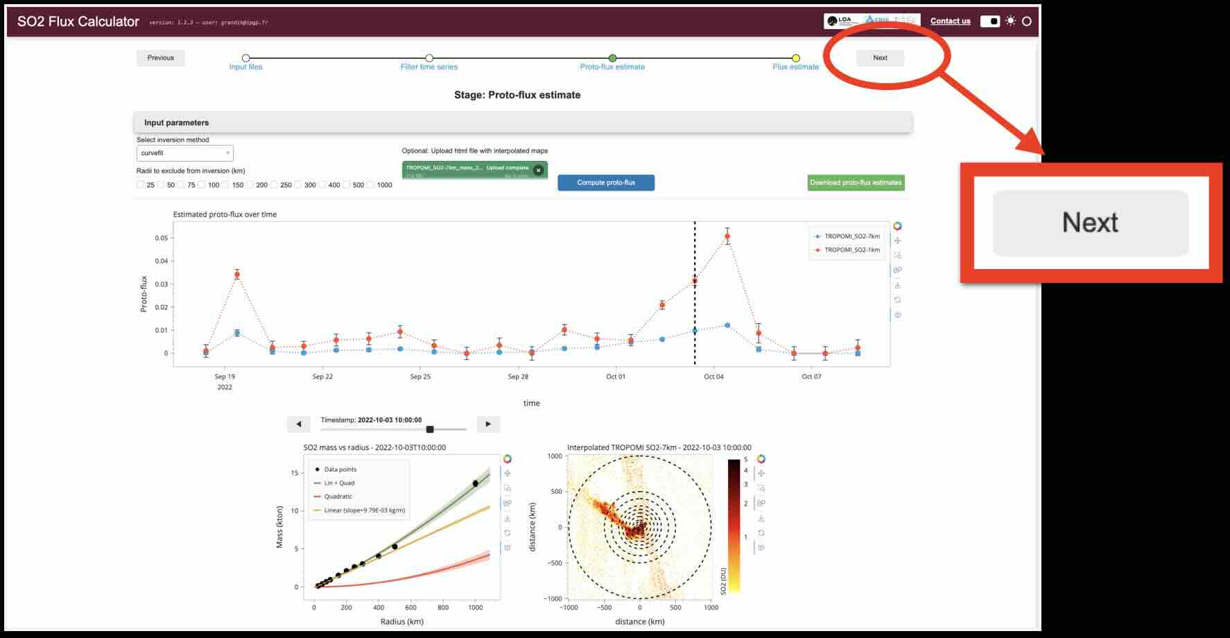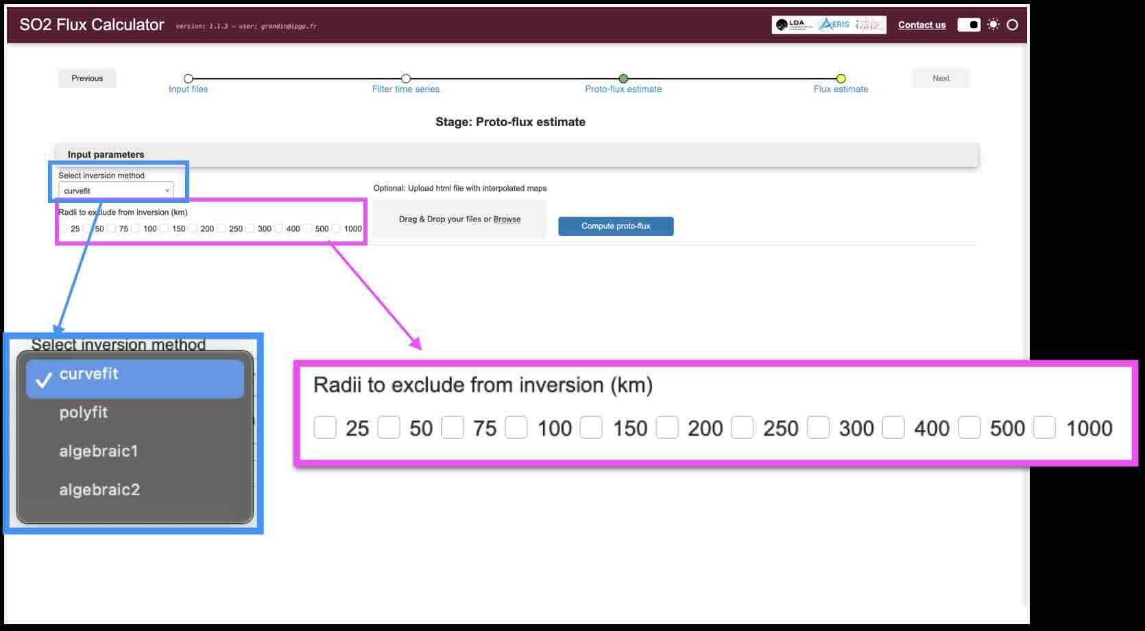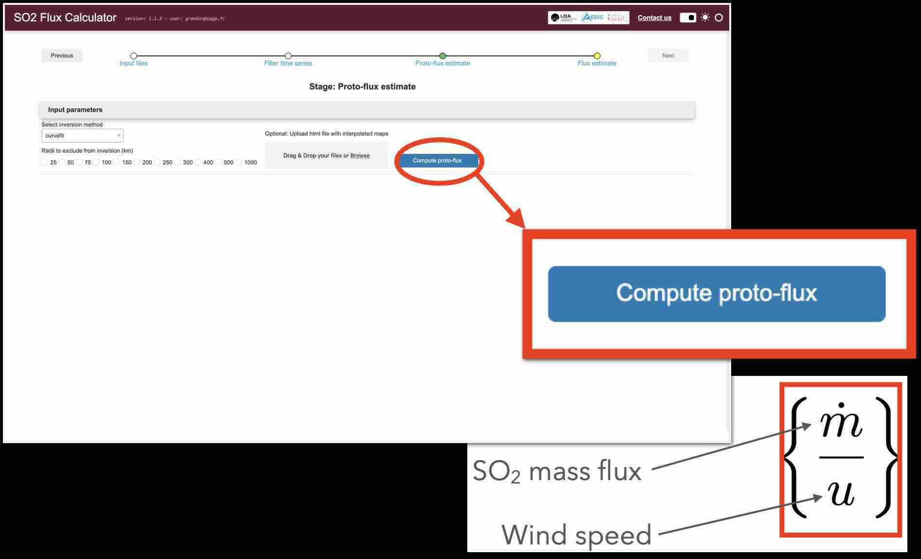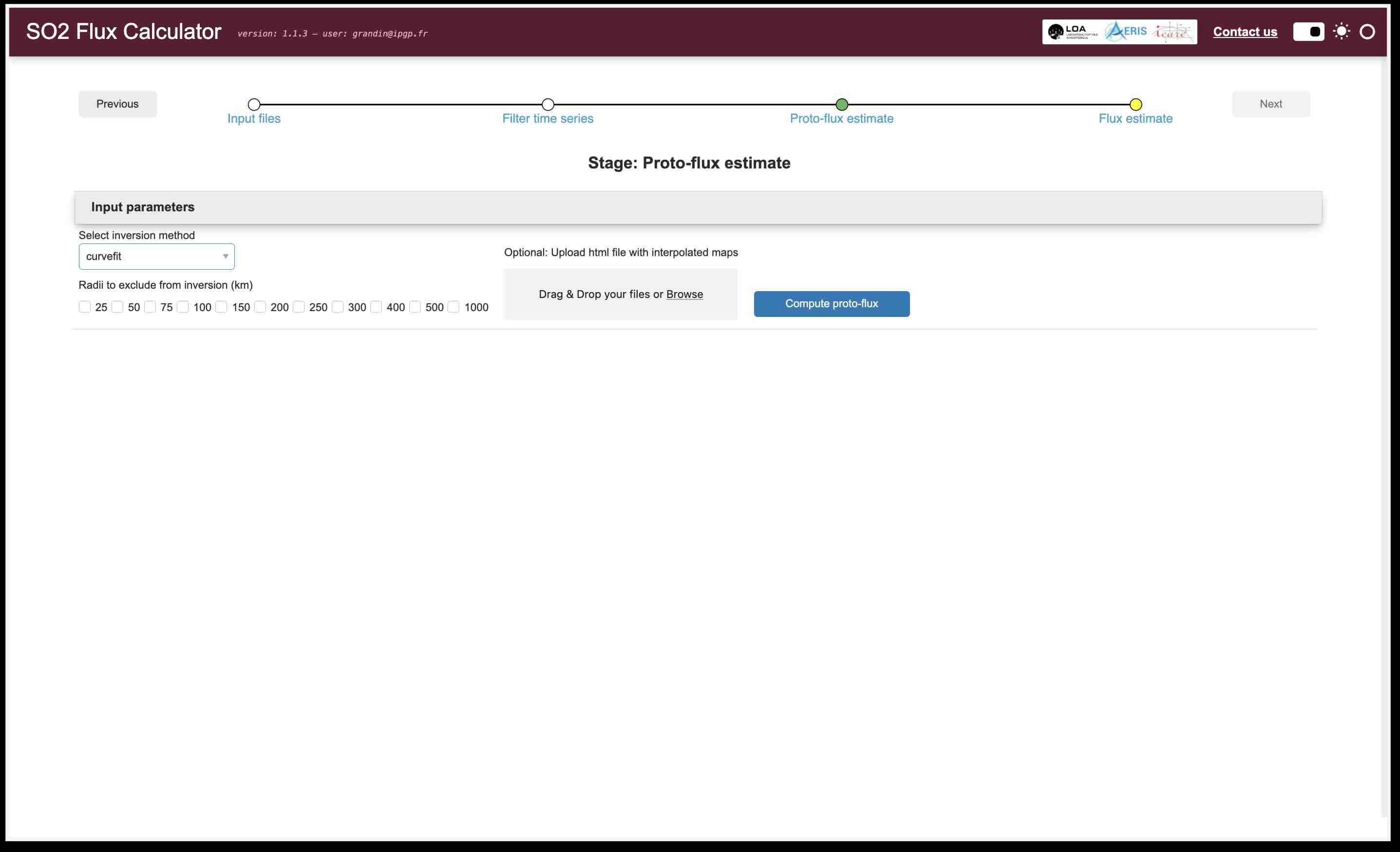 To trigger the inversion, click on Compute proto-flux