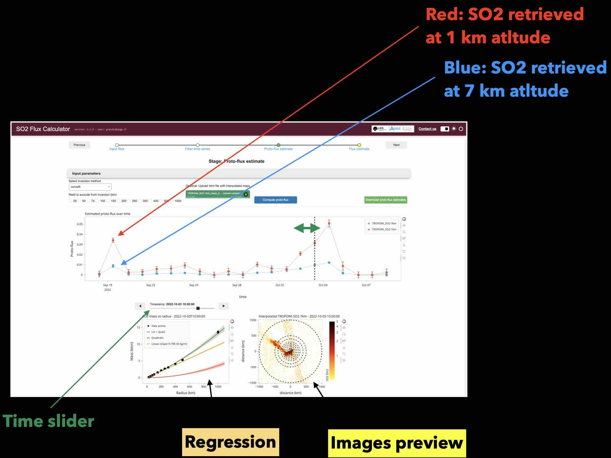When the inversion has ended successfully, the time-series is displayed, and the regression result is also shown for quality assessment.